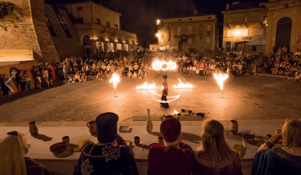 Grottazzolina è un luogo in cui tradizioni e sapori si intrecciano con la vita quotidiana. La celebrazione principale è la rievocazione storica “I Giorni di Azzolino”, a luglio, con tornei medievali, botteghe artigiane e spettacoli a tema dedicati alla figura di Azzo VII d’Este.Tra gli eventi più suggestivi c’è la Festa della Beata Vergine del Perpetuo Soccorso, che si svolge il primo lunedì di giugno, con luminarie, processioni e concerti bandistici.